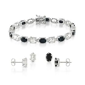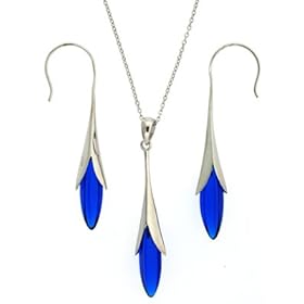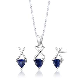 Sterling Silver Rhodium Finish Multishape Sapphire Pendant Earrings and 18 inch Necklace Set: Peora: Jewelry
