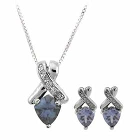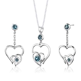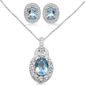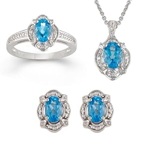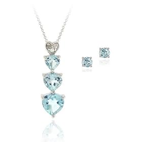 Sterling Silve Blue Topaz & Diamond Heart Necklace & Earrings Set: Jewelry