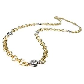14K Yellow Gold Link Necklace, with Bezel Set Diamonds: Jewelry