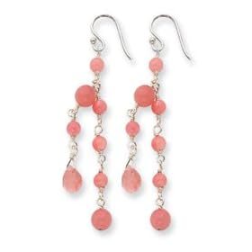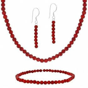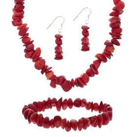 Sterling Silver Genuine Pink Coral Chip Necklace, Bracelet & Earrings Jewelry Set: Jewelry