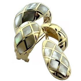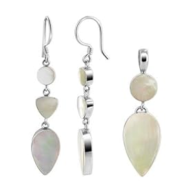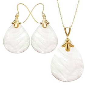 White Mother Of Pearl Diamond Back Earring, Ring and Pendant Set, 14k Gold: Jewelry