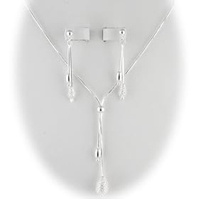 Sterling Silver Pressed Flower Teardrop Earrings and Matching Pendant Set, 16": Jewelry