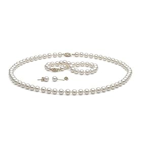 14k Yellow Gold Akoya Cultured Pearl 6.5-7mm Necklace and Stud Earring Set: Jewelry