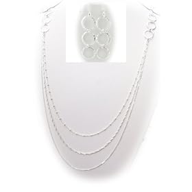Sterling Silver Multi-strand Hammered Circle 36 Inch Long Layered Chain Italy Necklace Earrings: Jewelry