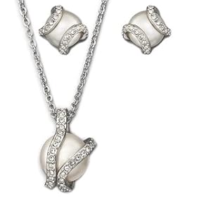 Sterling Silver Infinity Drop Pearl Gemstone Necklace Earring 2-piece Jewelry Set Bucasi: Jewelry