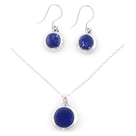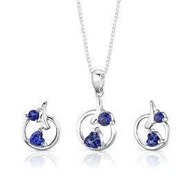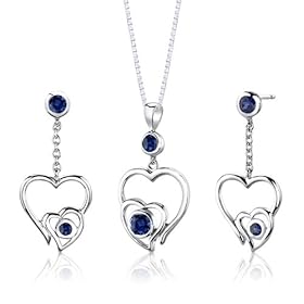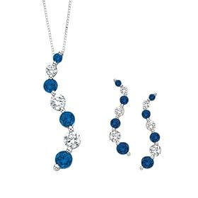 Sterling Silver Rhodium Finish Round Shape Sapphire Pendant Earrings and 18 inch Necklace Set: Peora: Jewelry