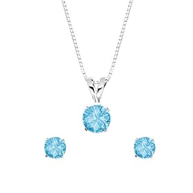 14k White Gold Blue Topaz Earrings and Pendant Set (1.00 cttw), 18": Jewelry