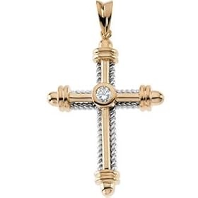 14k Yellow Gold Diamond Cross .066ct - JewelryWeb: Jewelry