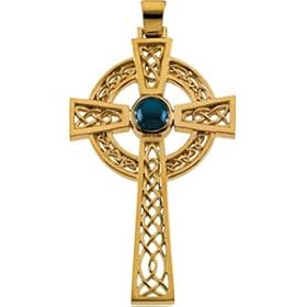 14k Yellow Gold Blue Star Sapphire Cross 52.75x32.25mm - JewelryWeb: Jewelry