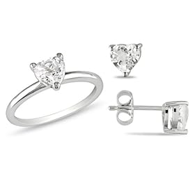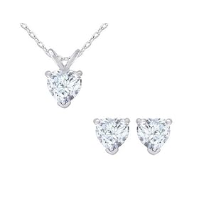 White Topaz Heart Earrings and Pendant Set 4.5 Carat (ctw) in Sterling Silver: Jewelry