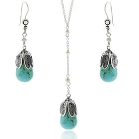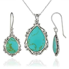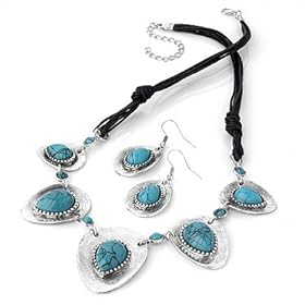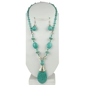 Turquoise Pendant Necklace and Earrings Set Fashion Jewelry: Jewelry