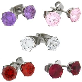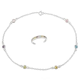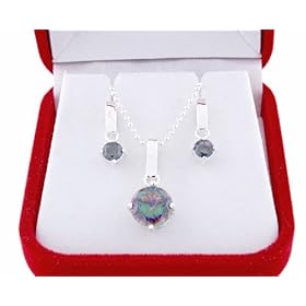 Sterling Silver Rainbow Topaz Cz Solitaire Necklace & Earring Set: Jewelry