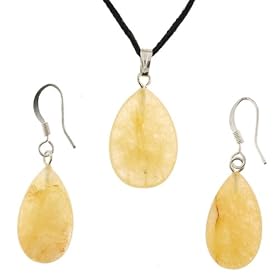 Yellow Serpentine Pear Shaped Pendant and Earrings Set - 15x22mm Pendant, 12x20mm Earrings - Adjustable Cord Necklace: Jewelry