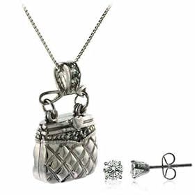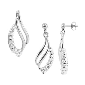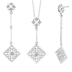 Unforgettable Beauty: Sterling Silver Rhodium Finish Pendant Necklace Earrings Set with Cubic Zirconia: peora: Jewelry