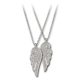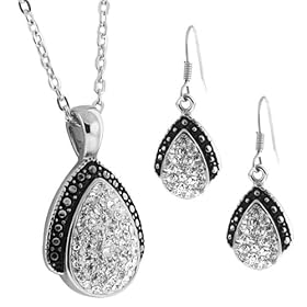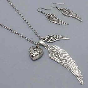 Bling Bling Womens Necklace & Earrings Set, Angel Wings with Stones, Silver Burnished/Black Diamond Color: Jewelry