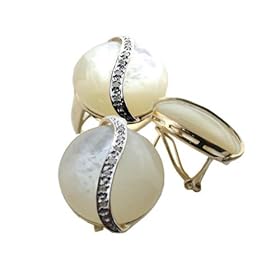 White Mother Of Pearl Round Stasis Earrings and Ring Set, 14k Gold: Jewelry
