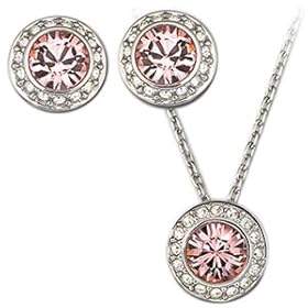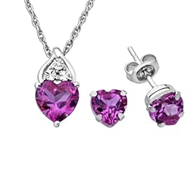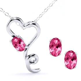 2.45 Ct Pink Topaz Heart Pendant Earrings Silver Set: Jewelry