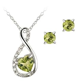 Sterling Silver Peridot & Diamond Accent Swirl Heart Necklace and Earrings Set: Jewelry