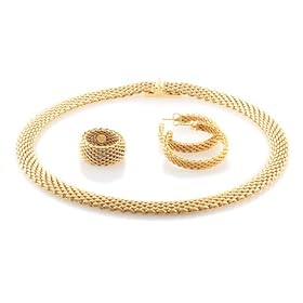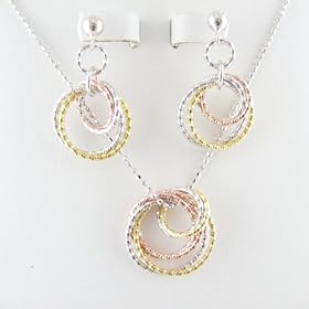 Tri-color Gold Plated Rings Sterling Silver Diamond Cut Ball Nickel Free Chain Necklace Italy 18 Inch Earrings: Jewelry
