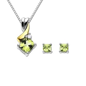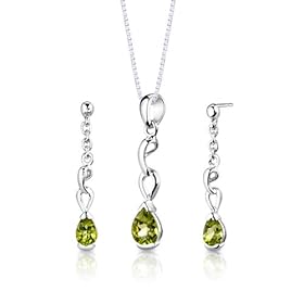 Sterling Silver Rhodium Finish 1.50 carats total weight Pear Shape Peridot Pendant Earrings and 18 inch Necklace Set: Peora: Jewelry