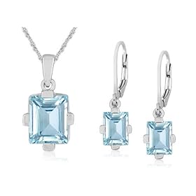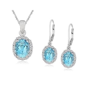 Blue Topaz Earrings and Pendant Set in Sterling Silver: Jewelry