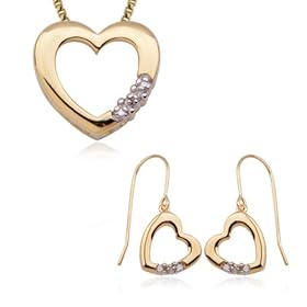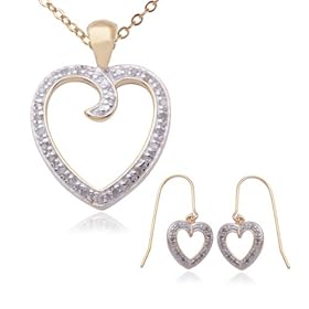 18k Yellow Gold Plated Sterling Silver Genuine Diamond Heart Earring and Necklace Set: Jewelry