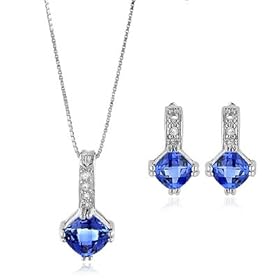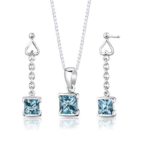 Sterling Silver Rhodium Finish 2.75 carats total weight Princess Cut Swiss Blue Topaz Pendant Earrings and 18 inch Necklace Set: Peora: Jewelry