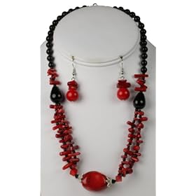Vibrant Red Black Onyx Natural Stone Necklace & Earring Set: Jewelry