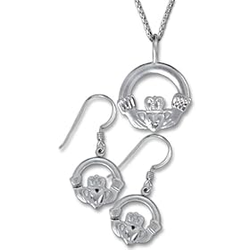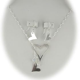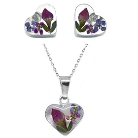 Sterling Silver Pressed Flower Heart Earrings and Matching Pendant Set, 16": Jewelry