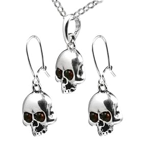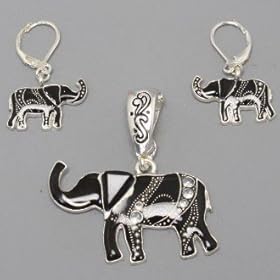 Womens Elephant Pendant and Earrings Set, Silver & Black: Jewelry