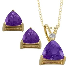 10 Karat Yellow Gold Trillion Amethyst Necklace and Earrings Set: Jewelry