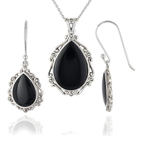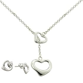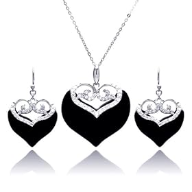 Nickel Free Sterling Silver Necklace & Earring Sets Double CZ Heart Onyx Set Pendant Length: 30.9mm Width: 32.28mm Earring Length: 22.3mm Width: 2.2mm Adjustable Chain Included: Jewelry