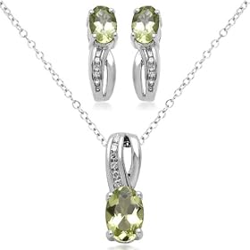 Sterling Silver Oval Peridot and Diamond Ring, Pendant, Earring Box Set, Size 7: Jewelry