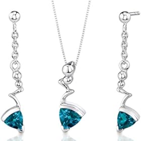 Museum Style 1.75 carats Trillion Cut Sterling Silver Rhodium Finish London Blue Topaz Pendant Earrings Set: Peora: Jewelry