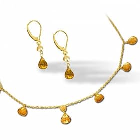 14K Yellow Gold, Citrine Necklace and Earrings Boxed Set: Jewelry
