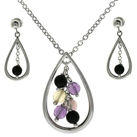 Sterling Silver Rhodium Finish 2.25 carats total weight Multishape Amethyst Pendant Earrings and 18 inch Necklace Set: Peora: Jewelry