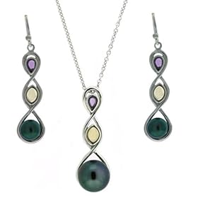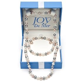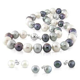 .925 Sterling Silver Multicolor Freshwater Pearl Natural Necklace, Bracelet and Earrings Set QSET-10250-AM: Pearlzzz: Jewelry