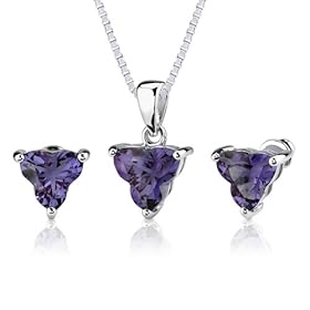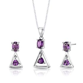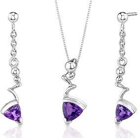 Museum Style 1.50 carats Trillion Cut Sterling Silver Rhodium Finish Amethyst Pendant Earrings Set: Peora: Jewelry