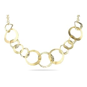 14K Yellow Gold Matte-Finished and Etched Hand-Crafted Open Link Necklace.: Jewelry