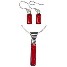 Sterling Silver Red Jasper Inlay Rectangle Drop Earrings and Matching Pendant Set, 16": Jewelry