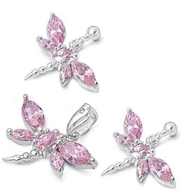 .925 Sterling Silver Multicolor Gemstone Dragonfly with CZ Accents Earrings and Pendant Set: Jewelry