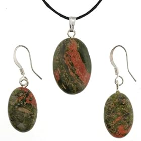 Unakite Oval Shaped Pendant and Earrings Set - Pendant - 15x22mm, Earrings - 12x18mm - Adjustable Cord Necklace: Jewelry