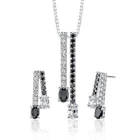 Versatile and Exotic: Sterling Silver Rhodium Finish Celebrity Style Earring Pendant Set with Black and White Cubic Zirconia: Peora: Jewelry
