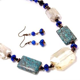 Turquoise Drop Natural Stone Necklace & Earring Set: Jewelry