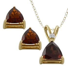 10 Karat Yellow Gold Trillion Garnet Necklace And Earrings Set: Jewelry