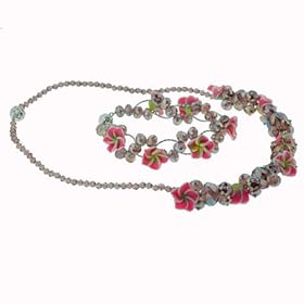Violet Flower Bead Necklace and Bracelet - 18" Necklace - 8" Bracelet - Magnetic Clasp: Jewelry
