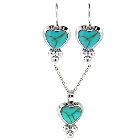 Turquoise Heart Natural Stone Necklace & Earring Set: Jewelry