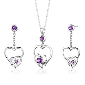 Sterling Silver Rhodium Finish 1.25 carats total weight Round shape Amethyst Pendant Earrings and 18 inch Necklace Set: Peora: Jewelry