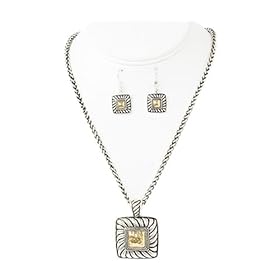 Two Tone Square Pendant Necklace & Earring Set: Jewelry