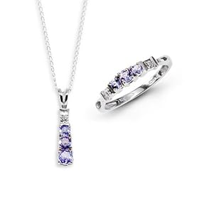 New 10k White Gold Tanzanite Diamond Necklace Ring Set: Jewelry